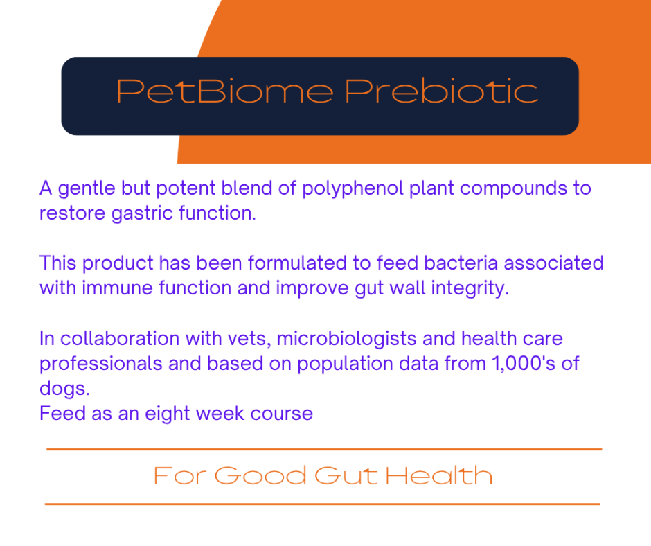 The active ingredients in Prebiotic are also beneficial for dogs that have low numbers of bacteria associated with metabolism as indicated by the Biome4Pets Report.